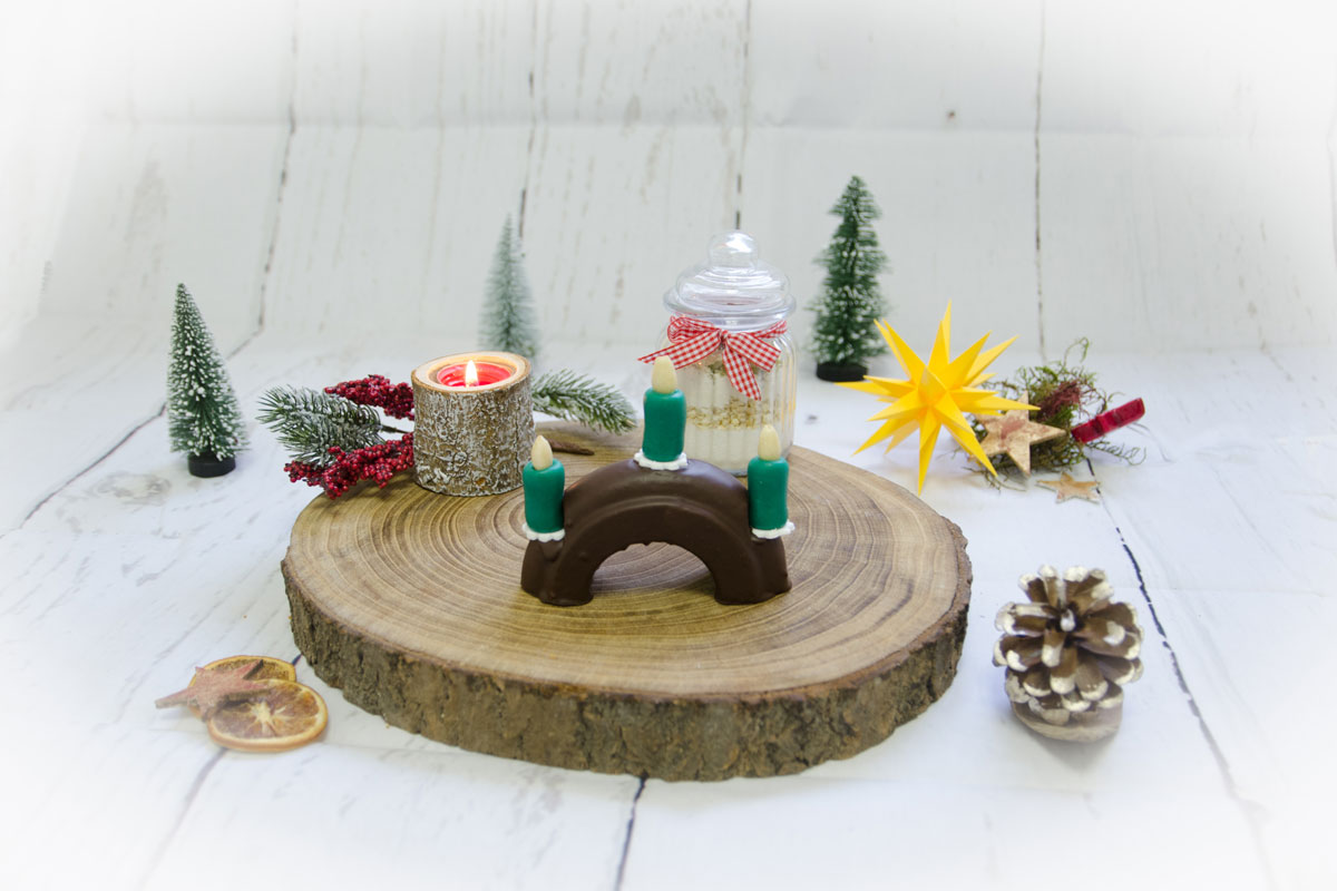 Liebevoll, nach alter, überlieferter Rezeptur, von Hand gefertigt, als Schwibbogen mit 3 Kerzen.